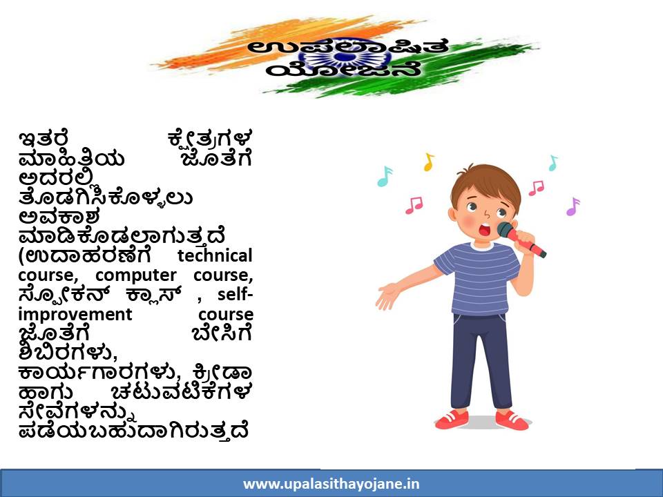 - ಉಪಲಾಷಿತ ಯೋಜನೆವತಿಯಿಂದ ವಿದ್ಯಾರ್ಥಿಗಳಿಗೆ ಉಚಿತ ತರಭೇತಿಗಳಾದ ಕಂಪ್ಯೂಟರ್ ಶಿಕ್ಷಣ, , ವ್ಯಕ್ತಿತ್ವ ವಿಕಾಶನ ಮಾರ್ಗದರ್ಶಿ, ಇಂಗ್ಲಿಷ್ / ಕನ್ನಡ ಭಾಷೆ ಕಲಿಕೆ ತರಗತಿ, ಉದ್ಯೋಗ ಶೀಲ ಅಭ್ಯಾಸ ಕೋರ್ಸ್ ತರಭೇತಿ, ಪರೀಕ್ಷೆ ಪೂರ್ವ ತರಭೇತಿಗಳನ್ನು ನೀಡಲಾಗುತ್ತದೆ ಮತ್ತು ಪರೀಕ್ಷೆಯಲ್ಲಿ ಯಶಸ್ಸು ಗೊಳಿಸುವುದರ ಬಗ್ಗೆ ಸಮಲೋಚನೆ ವೃತ್ತಿಪರರ ಜೊತೆ ಸಮಲೋಚನೆ ಇರುತ್ತದೆ.