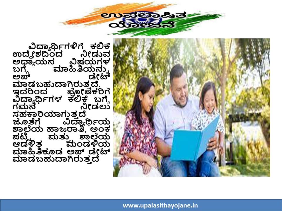 ಶಾಲೆ ಕಾಲೇಜುಗಳಿಂದ ವಿದ್ಯಾರ್ಥಿಗಳಿಗೆ ಕಲಿಕೆ ಉದ್ದೇಶದಿಂದ ನೀಡುವ ಅಧ್ಯಾಯನ ವಿಷಯಗಳ ಬಗ್ಗೆ ಮಾಹಿತಿಯನ್ನು ಹಾಗು ವಿದ್ಯಾರ್ಥಿಗಳು ಅದನ್ನು ಪೂರೈಸಿರುವದರ ಬಗ್ಗೆ ಮಾಹಿತಿಯನ್ನು ಅಪ್ ಡೇಟ್ ಮಾಡಬಹುದಾಗಿರುತ್ತದೆ ಇದರಿಂದ ಪೋಷಕರಿಗೆ ವಿದ್ಯಾರ್ಥಿಗಳ ಕಲಿಕೆ ಬಗ್ಗೆ ಗಮನ ನೀಡಲು ಸಹಕಾರಿಯಾಗುತ್ತದೆ ಜೊತೆಗೆ ವಿದ್ಯಾರ್ಥಿಯ ಶಾಲೆಯ ಹಾಜರಾತಿ ಬಗ್ಗೆ ಪ್ರತಿದಿನ ಅಪ್ ಡೇಟ್ ಆಗುತ್ತದೆ ಮತ್ತು ಶಾಲೆಯ ಆಡಳಿತ ಮಂಡಳಿಯ ಮಾಹಿತಿಕೂಡ ಅಪ್ ಡೇಟ್ ಮಾಡಲಾಗುತ್ತಿರುತ್ತದೆ.